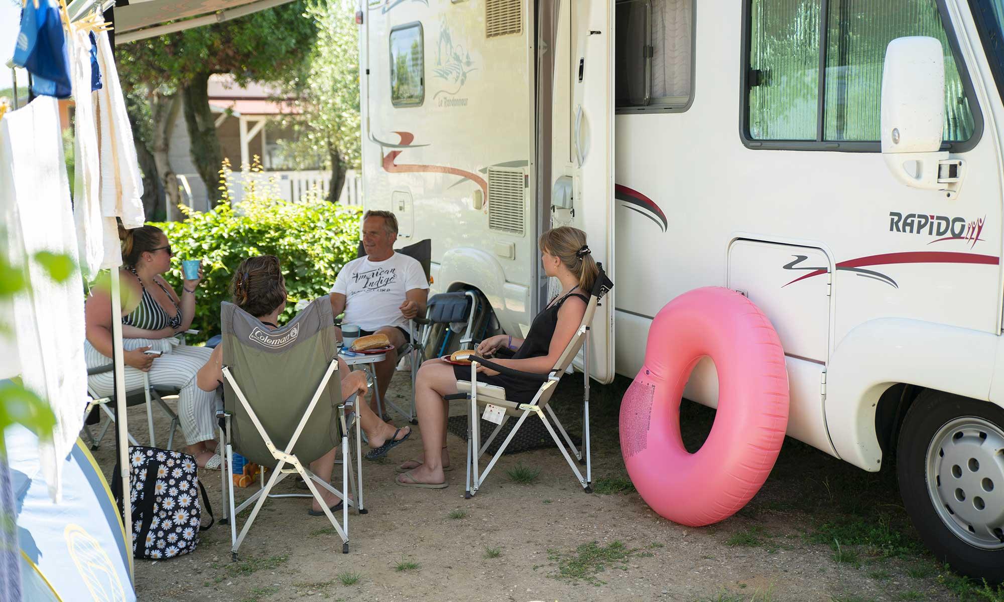 They can accommodate up to a maximum of 6 people with a caravan (maximum length of 6.5 m including tow bar), a camper (maximum length of 6 meters) or a tent (maximum size 6x5 meters).