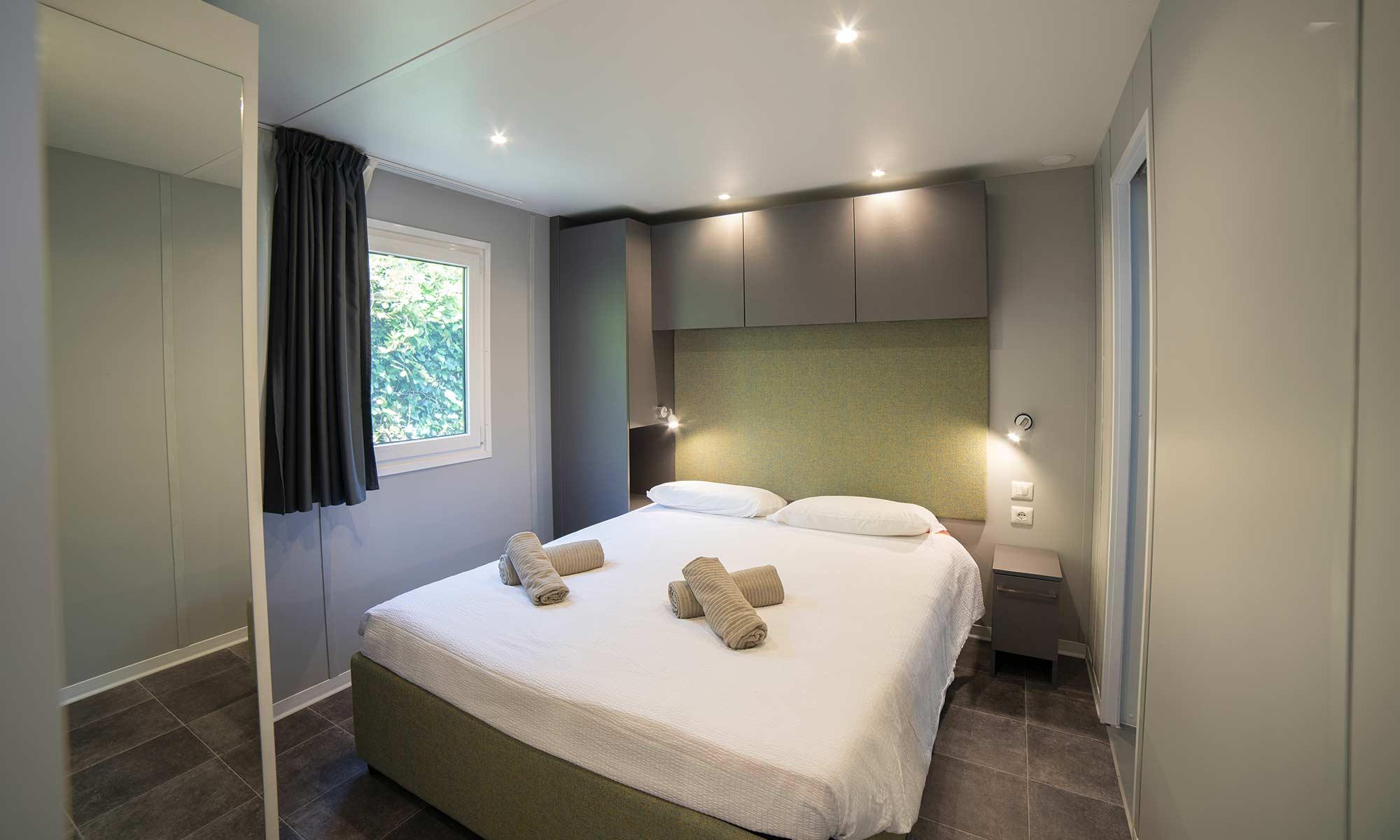 Villa Eden is a modern luxury mobile home with two separate bedrooms, one double and one with 2 single beds, a large living room with kitchenette, table, charis and sofa, two bathrooms with shower, toilet and sink, outdoor terrace with breathtaking lake view.